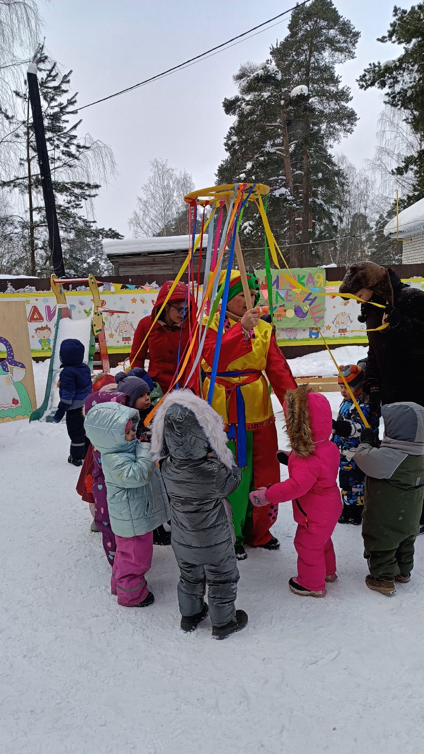 Мероприятия: Массовые игры на улице (если позволяла погода) или в спортзале: хороводы, перетягивание каната, "бой" подушками. Возможно, устраивали эстафеты.