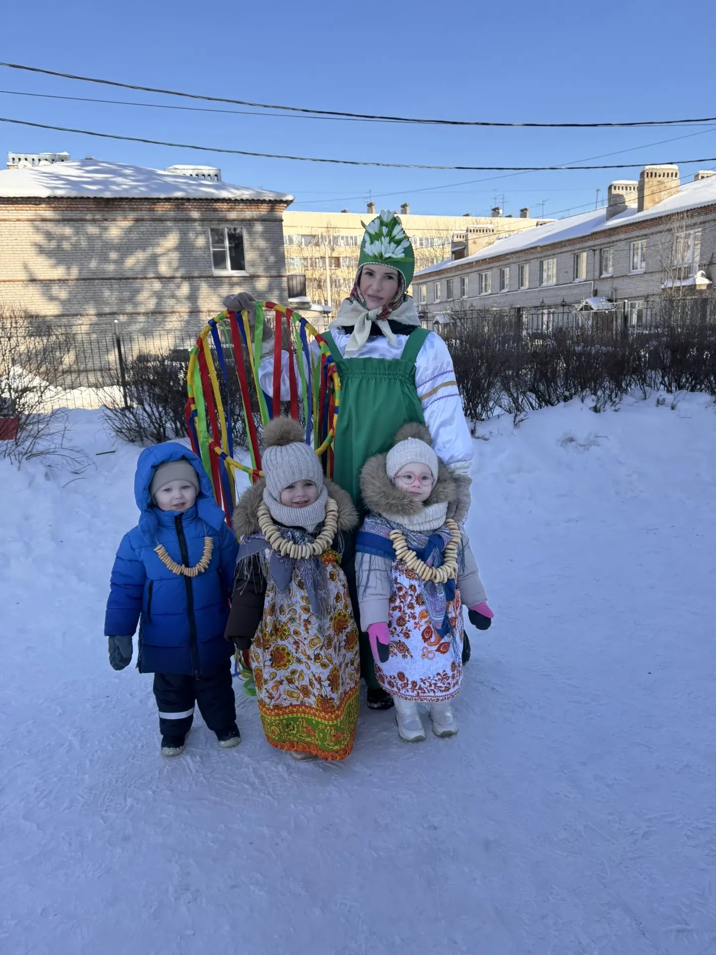 Спектакли: Показ масленичных представлений, где главными героями были скоморохи, Зима и Весна. Дети могли сами участвовать в ролях или быть активными зрителями.